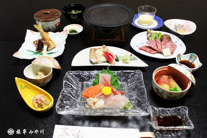 明治39年創業。小矢部川沿いにある料理が自慢の料理旅館です。 富山の味あふれる夕食・朝食の2食付、さらに夕食には要予約のお刺身盛り合わせ付プランも好評。 宿泊以外にも、宴会・法要・会食などの利用にも新鮮な海の幸・山の幸をふんだんに使った日本料理を堪能できます。 完全個室なので、川のせせらぎの音を聞きながら、ゆっくりとした時間を過ごせます。