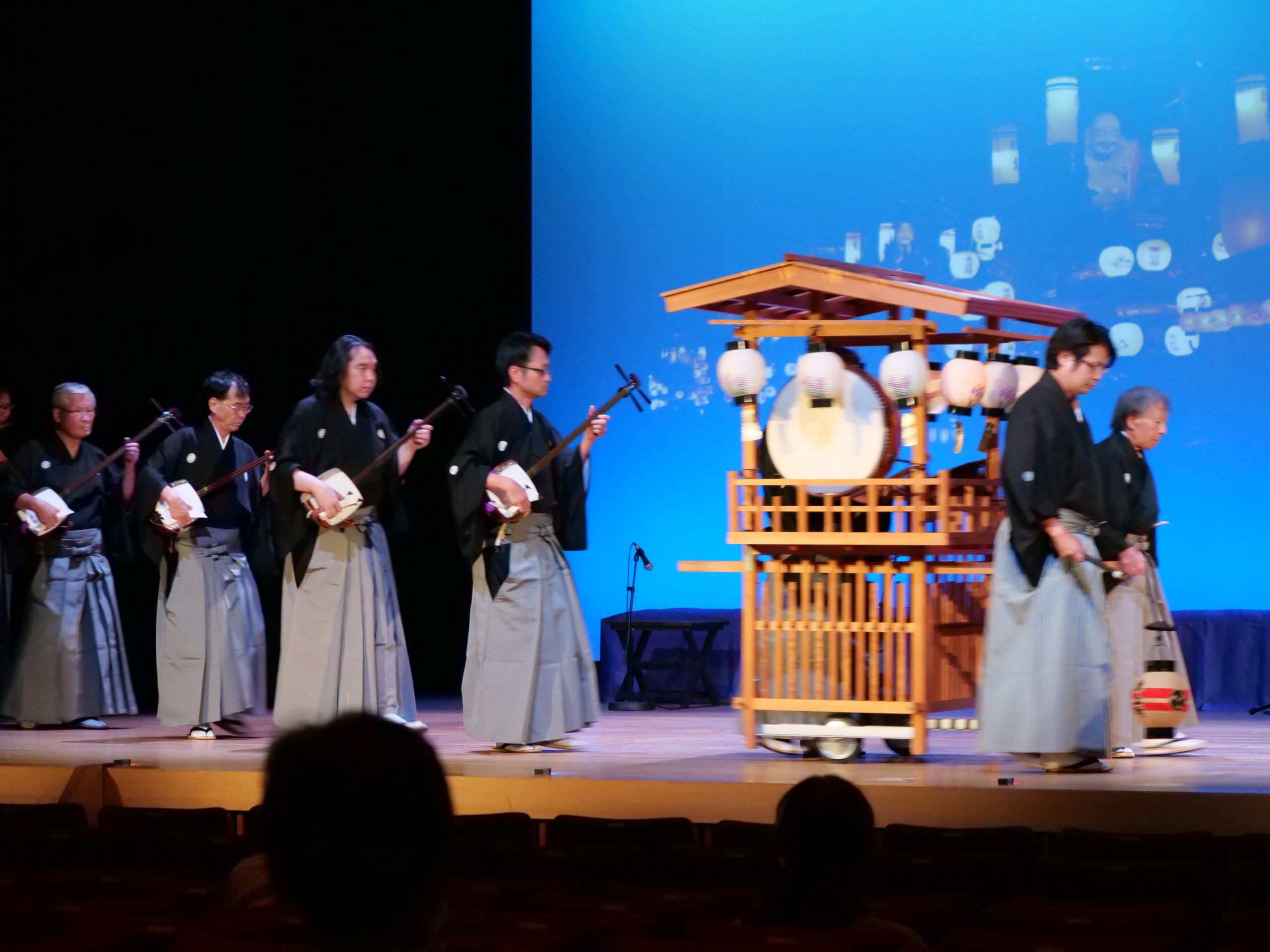 庵唄公演では、三味線・笛・太鼓の情緒豊かで優雅な音色のお囃子に始まり、今に伝わる数十曲もの庵唄の中から選りすぐりの唄をお楽しみ頂きます。背景に映し出された曳山が幻想的な雰囲気を醸し出し、華麗ながらも荘厳な城端曳山祭の気分に浸って頂けます。また庵唄にのせてしっとりと舞う日本舞踊との共演も是非お楽しみ下さい。