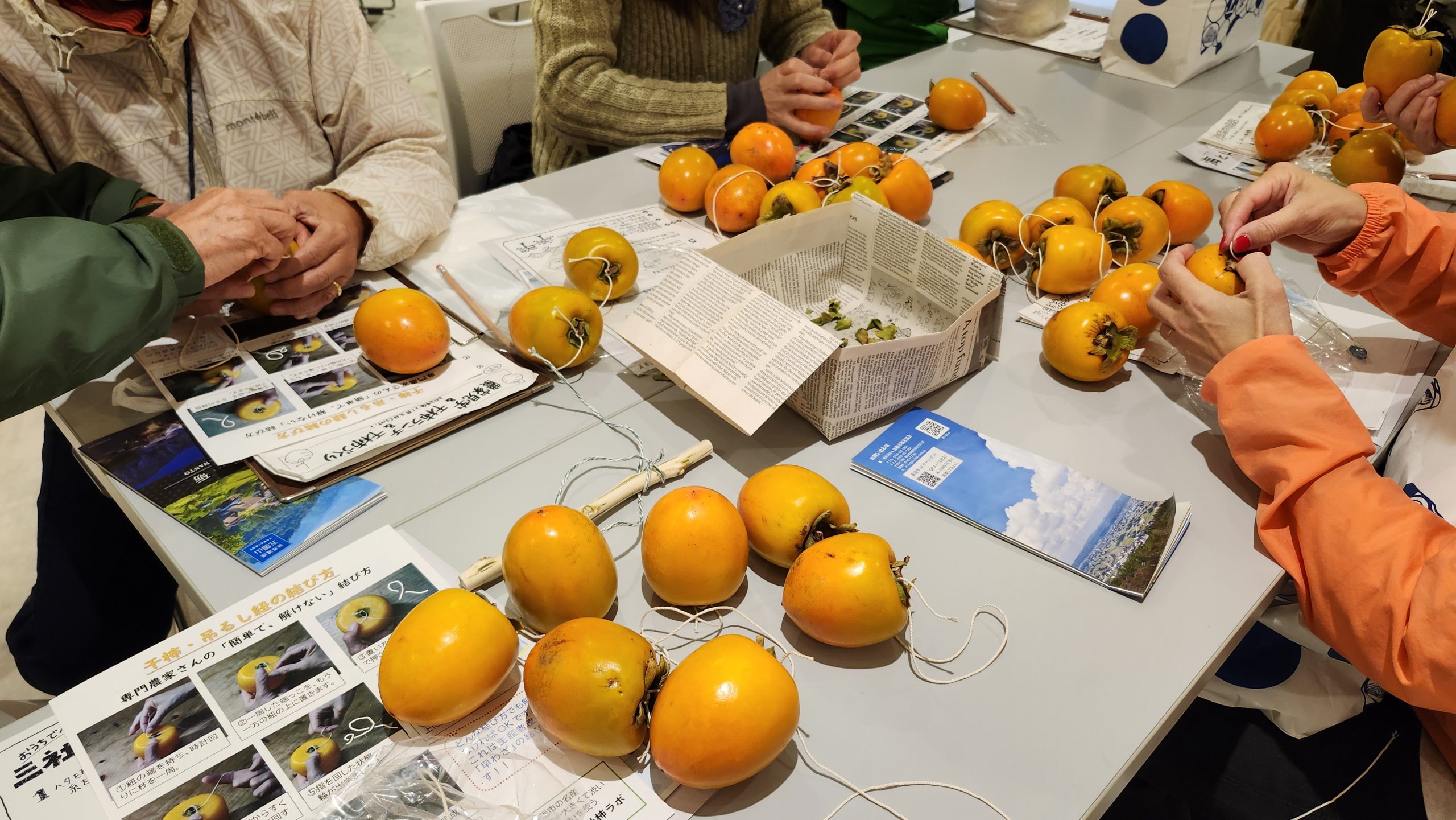 今年採れたての特産「三社柿」を使用し、生産組合のプロから美味しく仕上げるコツや、直伝のひも結びテクニックを学びましょう。あとは持ち帰って皮をむいて干すだけ!