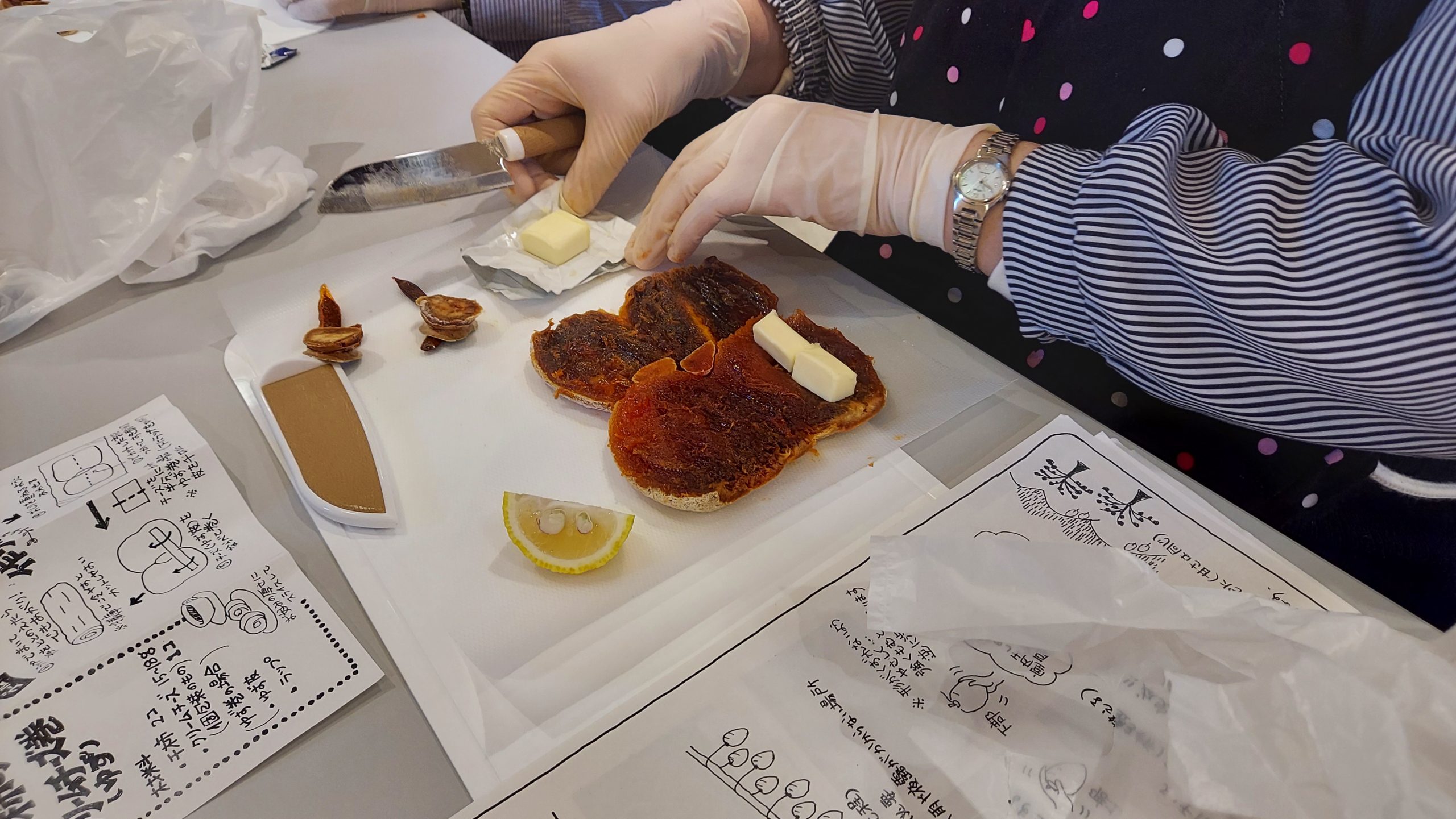 講座の後は、あんぽ柿とナッツ・チーズの簡単デザートづくり♪試食や干柿のおやつを楽しみながらのカフェタイムも付いています。