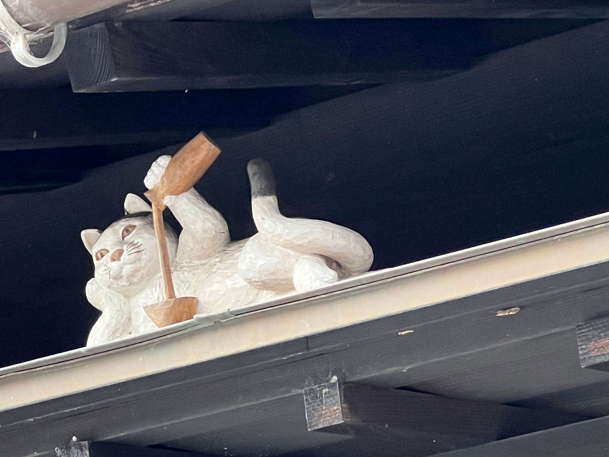 瑞泉寺から続く八日町通りは、「彫刻師の町」として知られています。通り沿いには伝統的な木彫り工房が軒を連ね、今もどこからかノミの音が聞こえてきます。 町歩きでは、軒先や看板に施された繊細な彫刻を見つけるのも楽しみの一つです。木彫りのねこ探しのように、遊び心のある作品を探しながら散策するのもおすすめです。