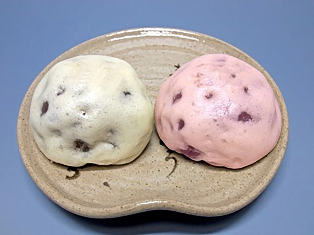 田んぼの上にうっすらと雪が降り積もった情景をイメージして作ったおまんじゅうは、北海道産小豆を氷砂糖で炊き上げ、北海道九州産小麦の薄皮で包んだ、あっさりと甘さ控えめな粒あんがたっぷり詰まっています。店頭のからくり看板が目印です。