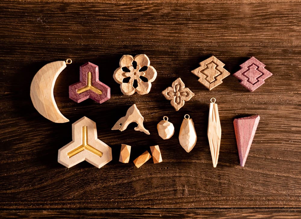 「彫る」ではなく「選ぶ」、新感覚の井波彫刻の体験。 彫刻師が一つ一つ丁寧に制作した様々なパーツの中から、自分好みのパーツを選んでアクセサリーを作ります。形・柄・組み合わせのデザインで、ほかとは違う一つだけの仕上がりに。とっておきの日に身につけたい、特別なアクセサリーができあがります。詳しくはこちら