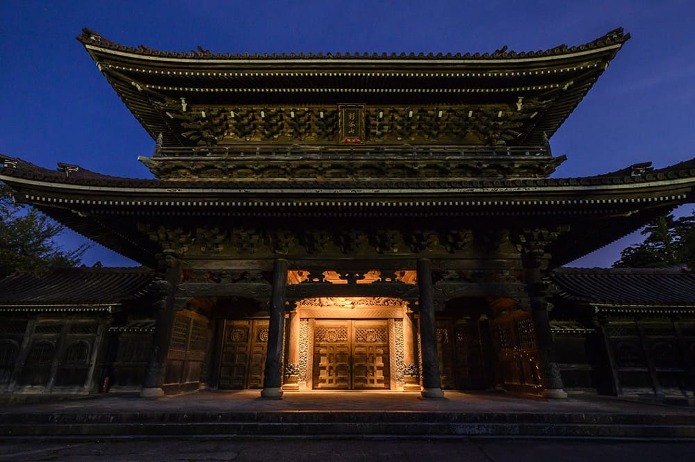 まるで『木彫刻の美術館』とも称され、精緻な彫刻が随所に施されている井波別院瑞泉寺。寺内の木彫刻をライトアップすることで陰影が生まれ、昼間より彫刻の緻密さを感じることができます。また、井波彫刻師が解説してくれるので、井波彫刻の技術への理解を深めることができます。詳しくはこちら