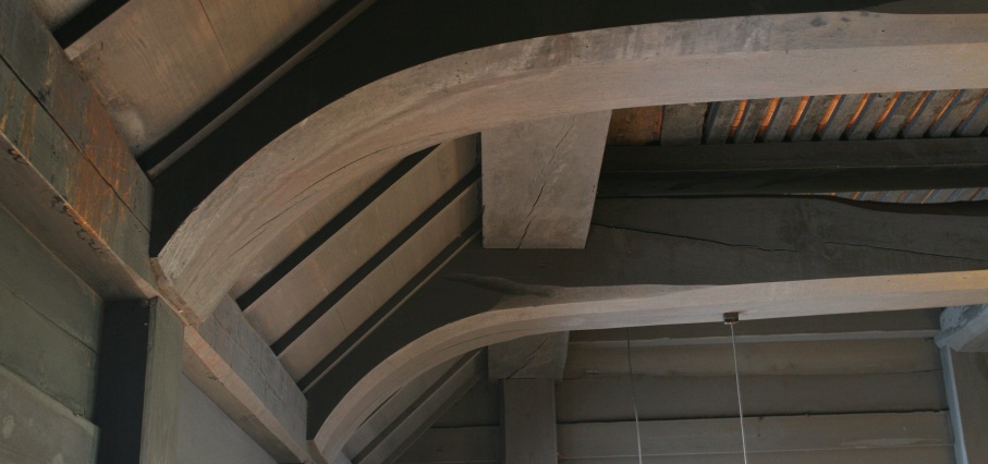 すすに燻された梁、わら縄など、歴史的民家である合掌造りの内部構造がよくわかります。