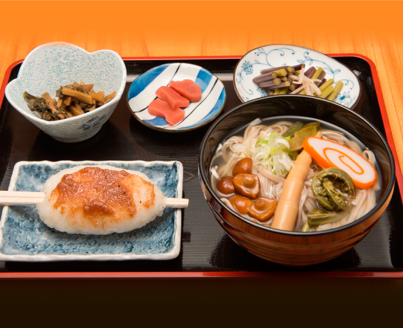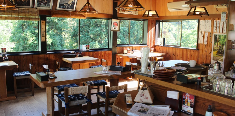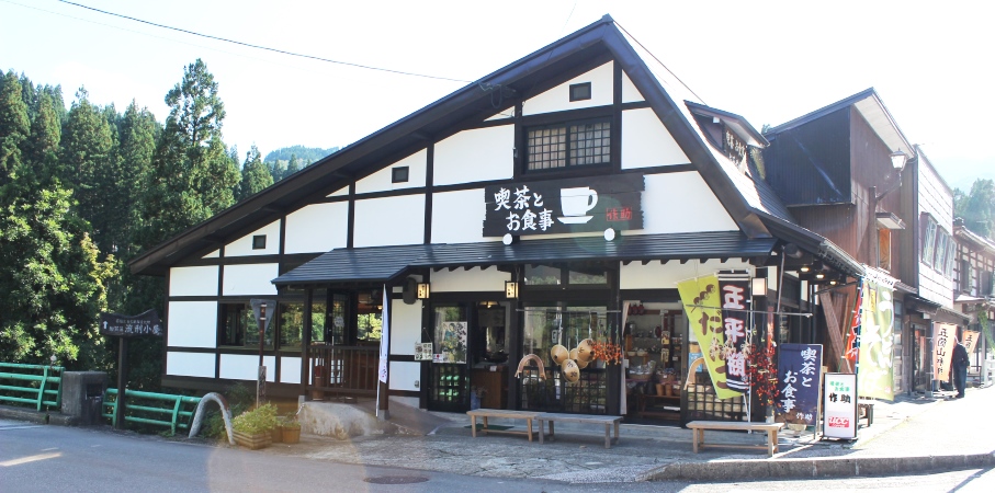五箇山の味が楽しめるミニセットが人気、手づくりの五平餅にクルミみそが好評!!山菜のそば、うどんもおすすめ。山の湧水を飲用しているので水が美味とのお声が有り至福のコーヒーが特徴です。栃の実アイスはここだけ。