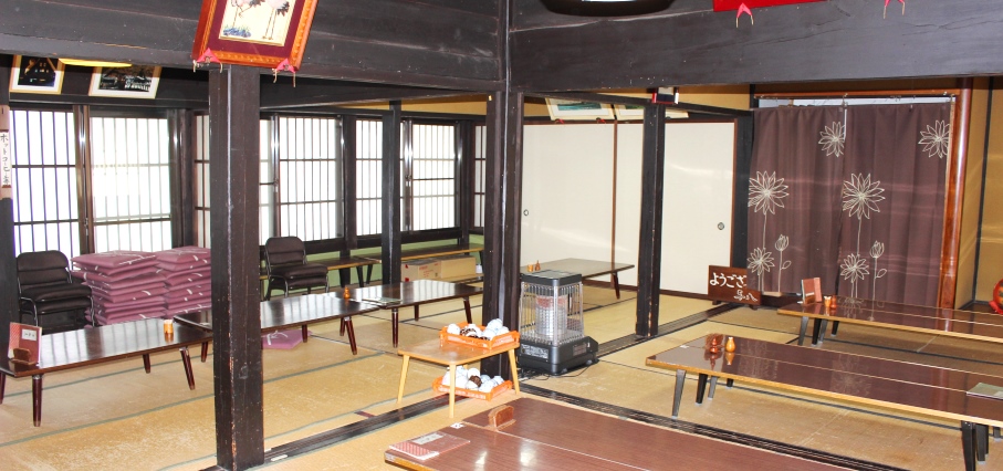合掌造りの中で、自慢の天ぷらや蕎麦・岩魚など五箇山の幸を堪能できます。