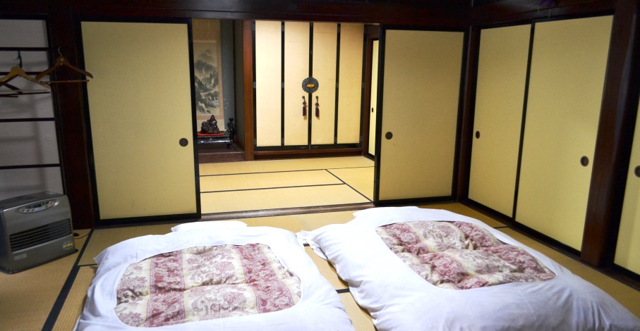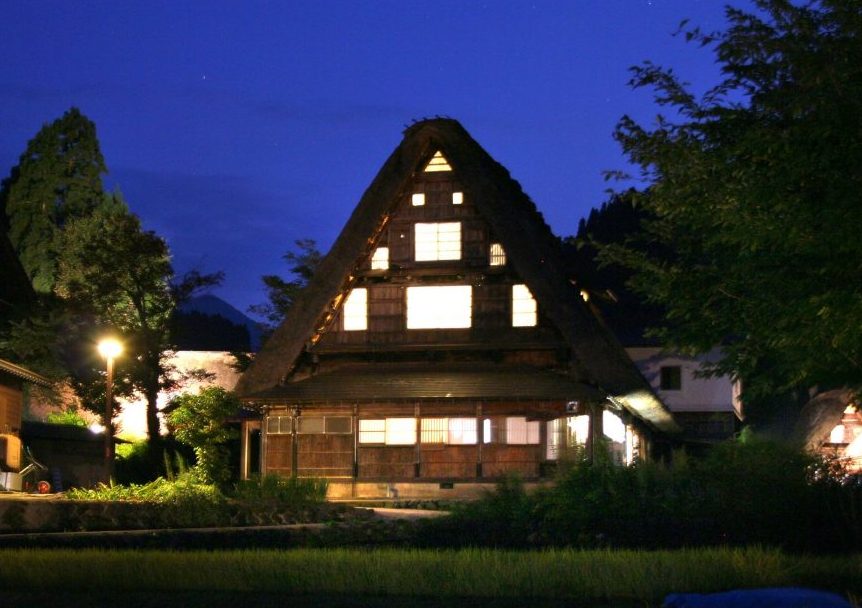 車/五箇山ICより国道156号線を砺波方面へ、下梨交差点より国道304号線を城端・金沢方面へ約16分 茅葺きの相倉口バス停前坂道を上りお宿へ バス/世界遺産バス「相倉口」バス停下車、徒歩約6分