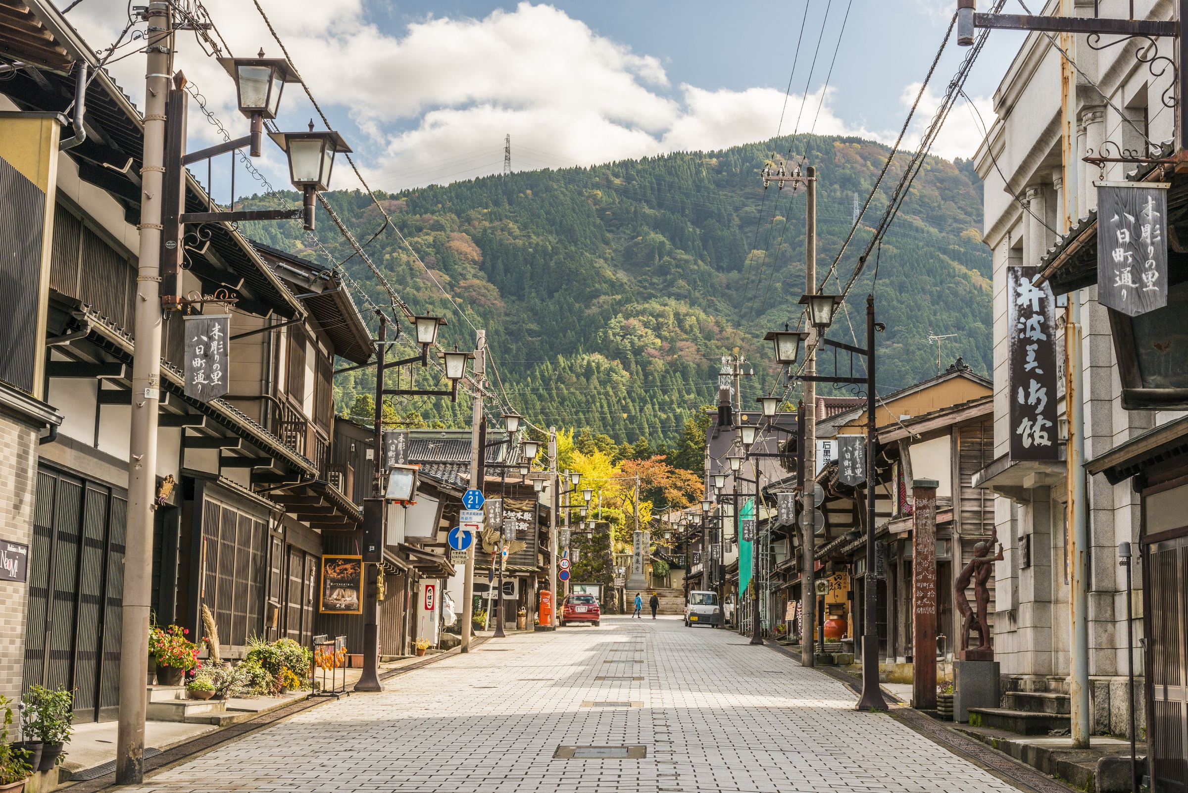 600年の歴史を誇る井波別院瑞泉寺から伸びるこの石畳の通りでは、どこからともなく職人の打つ木槌とノミの音が聞こえます。木槌の音は心地よく、環境省が認定する「残したい日本の音風景100選」にも選ばれました。