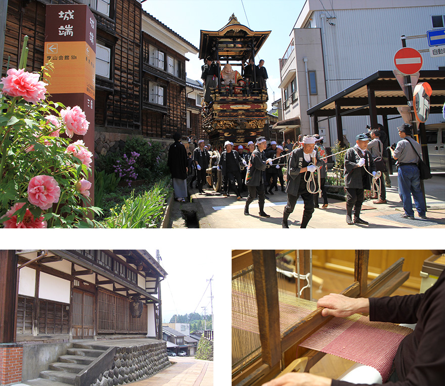 Known as the Little Kyoto of Etchu, Johana prospered as the temple town of Zentokuji Temple. Old storehouses line the stone-paved streets in the quietly sprawling, poignant townscape. Back in the Edo period, the town flourished thanks to booming silk production under the protection of the Kaga clan, and its history and culture can be felt to this day. The Johana Hikiyama Festival, registered as a piece of UNESCO Intangible Cultural Heritage, is a spring festival that boasts 300 years of history and captivates the hearts of visitors with its elegance.