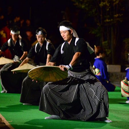 The Gokayama Mugiya Festival is held every year on September 23rd and 24th at Shimonashi Jinushi Shrine. During the nighttime stage performances, you can view a number of groups perform the Mugiya folk song and dance that originated here in Gokayama courtesy of Gokayama’s Organization for the Preservation of Folk Songs and Dances. So, come on by and enjoy the Mugiya song and dance that has been passed down in the region for generations.