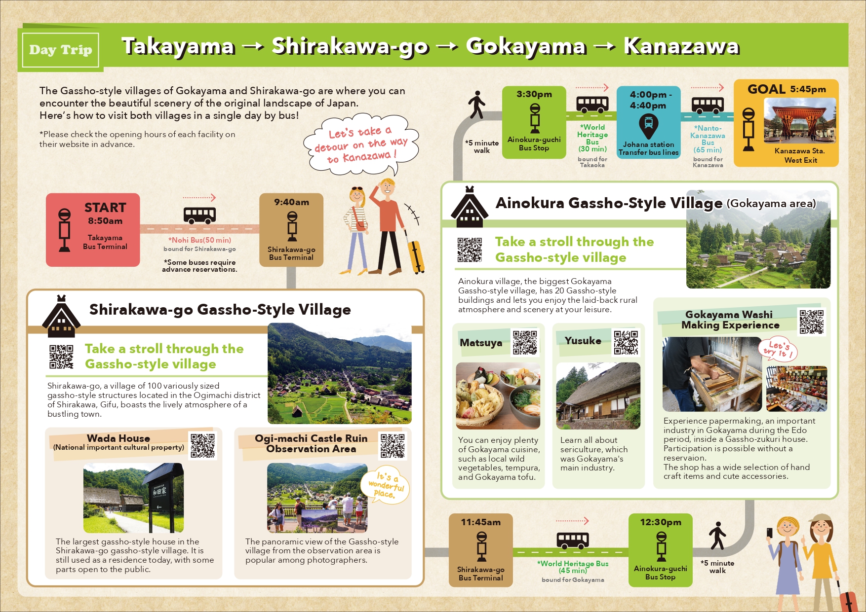 ▼World Heritage Bus(45min) bound for Gokayama